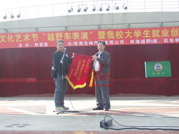 12月5日龍神公司與廣東科學(xué)技術(shù)職業(yè)學(xué)院聯(lián)合“越野e族”舉辦“第十七屆大學(xué)生文化藝術(shù)節(jié) 越野車文化交流表演暨大學(xué)生就業(yè)創(chuàng)業(yè)基地建設(shè)啟動(dòng)儀式在廣科院校園隆重召開。此次大學(xué)生文化藝術(shù)節(jié)由廣科院校團(tuán)委主辦,龍神公司、越野e族協(xié)辦,出席此次活動(dòng)的分別來自珠海,江門,中山,順德,澳門的越野e族朋友共八十多輛高級(jí)越野車參與;在緊張刺激的汽車轟鳴聲中拉開了序幕。