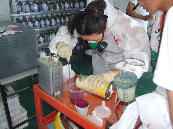 老師們進行調漆練習