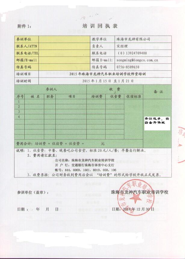 2、報名回執(zhí)表需在培訓(xùn)開始前5日,回傳至我司。