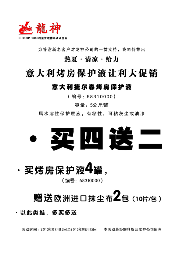 “熱夏。清涼。給力”意大利烤房保護(hù)液讓利大促銷(xiāo)。
